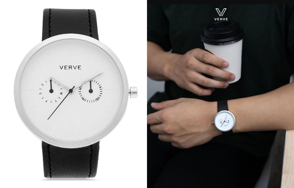 MAVERICK White dari Verve Watch merupakan model jam tangan chrono-graph pertamanya yang mengusung gaya elegan dan kontemporer. Jam ini dilengkapi dengan dua fitur chrono-graph berfungsi untuk memperlihatkan hari dan tanggal, bersama-sama dengan jarum jam, menit, dan detiknya.