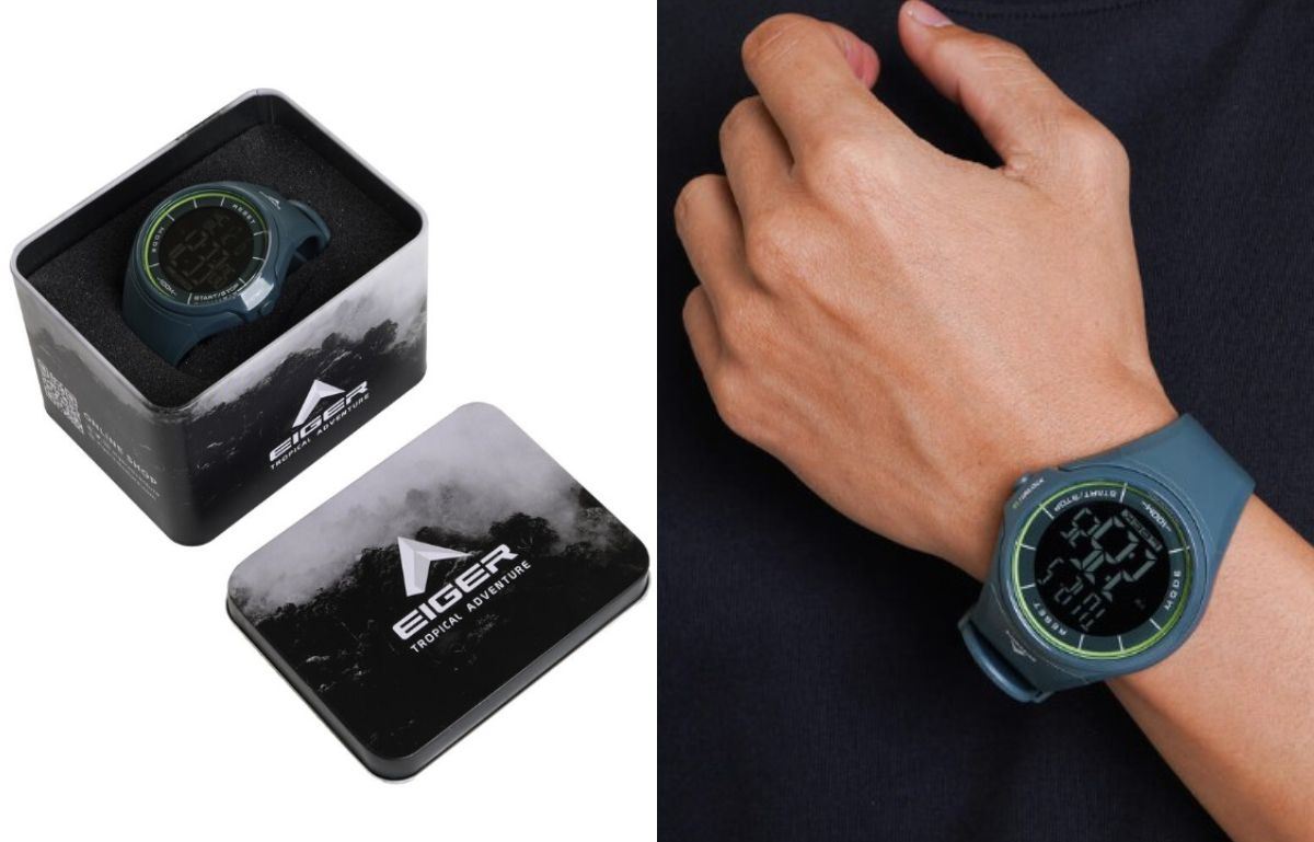 Jam tangan digital Touch Digi 1.0 buatan EIGER sesuai digunakan sehari-hari maupun saat berpergian. Produk ini memiliki fitur touchpad, stopwatch, pengatur waktu bangun otomatis, pencahayaan EL backlight serta sifat tahan terhadap kedalaman air hingga 10ATM (harap diingat tidak dianjurkan untuk kegiatan snorkeling atau diving).