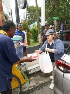 Gaspersz yang mendampingi Tim di Ambon secara spontan menyapa setiap tukang becak sambil membagikan paket nasi kotak tersebut.