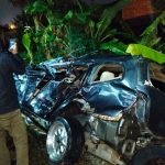 Nissan Livina hancur berat setelah ditabrak kereta commuter line karena roda slip di rel dan tidak Baca Juga