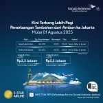 Ambontoday.com, Ambon.– Dalam upaya memperluas pilihan waktu terbang serta meningkatkan kenyamanan pelanggan, Garuda Indonesia kini menghadirkan Baca Juga