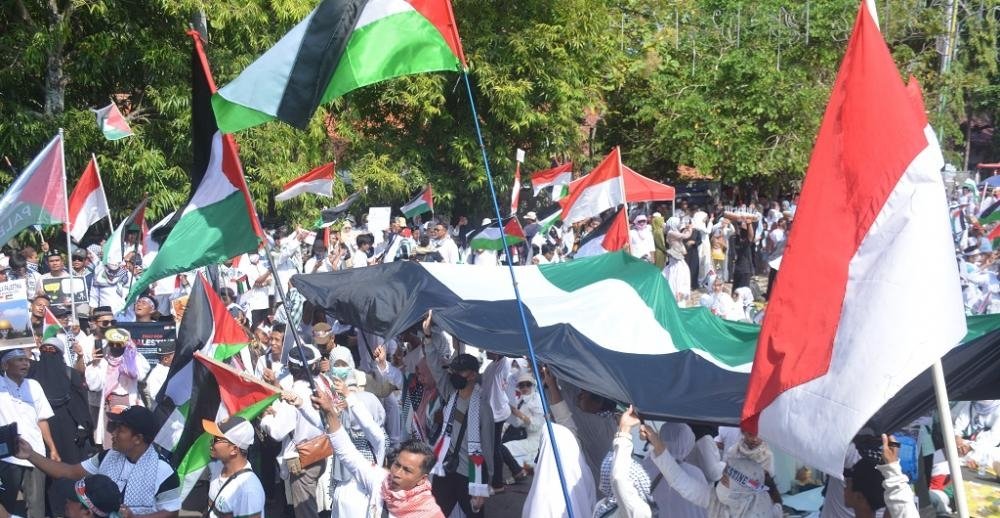 Tema yang mereka usung berbunyi lantang: “Dari Bumi Jazirah Al-Mulk untuk Palestina.”