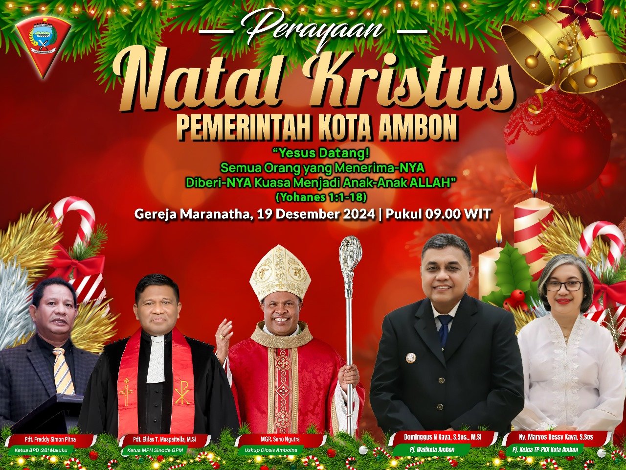 “Dalam kaitan dengan perayaan hari-hari besar keagamaan, Pemerintah Kota (Pemkot) Ambon setiap tahunnya melaksanakan Ibadah Perayaan Natal Kristus Pemerintah Kota Ambon. Dimana untuk tahun ini penyelengaraannya akan berlangsung pada hari Kamis, 19 Desember 2024,” kata Lekransy.