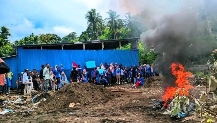 Banda, Maluku Tengah — Sejumlah mahasiswa Universitas Banda Naira (UBN) menggelar aksi demonstrasi di Parigi 2, Desa Nusantara RT 03, Jumat (19/9/2025). Aksi ini digelar sebagai bentuk penolakan terhadap pembangunan cold storage yang diduga milik Abdullah Tuasikal, mantan Bupati Maluku Tengah dua periode sekaligus mantan anggota DPR RI dari Partai NasDem.
