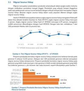 “Artinya 7 dari 100 penduduk Maluku lahir di provinsi lain. Proporsi penduduk berstatus migran seumur hidup antarprovinsi terbesar berada pada generasi X sebesar 12,03 persen. Delapan dari 100 penduduk generasi milenial merupakan migran seumur hidup antarprovinsi,” katanya saat rilis yang berlangsung di Ambon, Senin (30/1/2023).