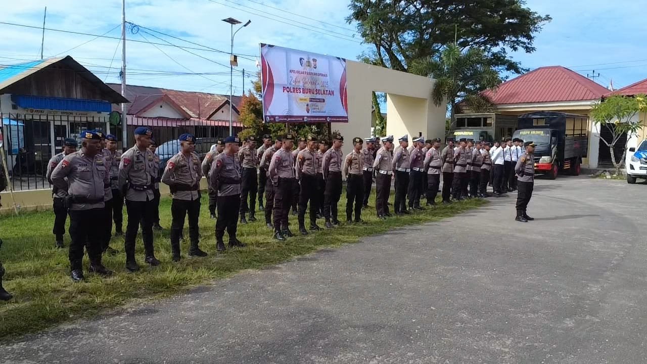 Apel gelar pasukan diikuti para Pejabat Utama Polres Buru Selatan, personel Kompi 3 Batalyon A Pelopor, Kompi C 735 Nawasena, Sat Samapta, Satlantas, Sat Resintel, personel staf, serta unsur Dinas Perhubungan Kabupaten Buru Selatan.