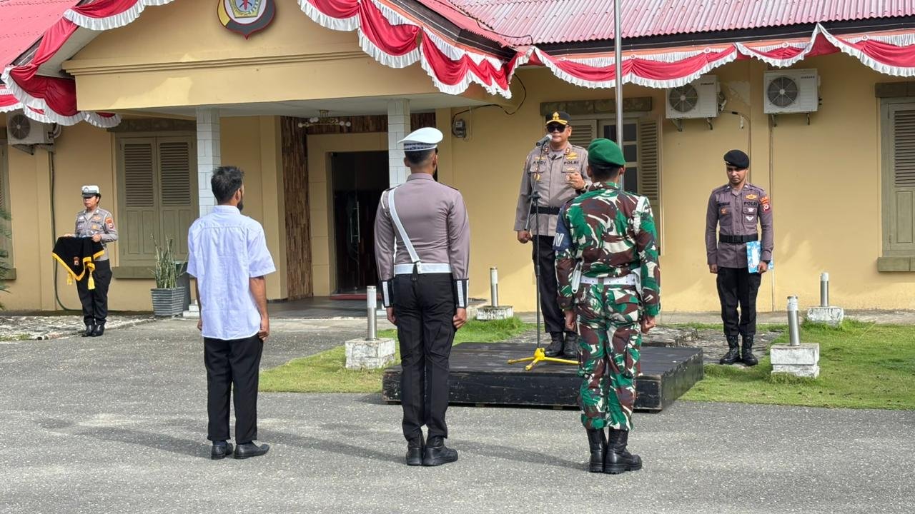 Kapolres Buru Selatan, AKBP Andi P. Lorena S.I.K., M.H, memimpin langsung apel yang diawali dengan persiapan pasukan, laporan perwira apel, hingga penyematan pita tanda operasi kepada perwakilan personel Satlantas, Provos Kompi C 735 Nawasena, dan Dinas Perhubungan. Pita itu bukan sekadar simbol, tetapi tanda dimulainya tanggung jawab baru bagi para petugas menjaga keselamatan di jalan-jalan Buru Selatan.