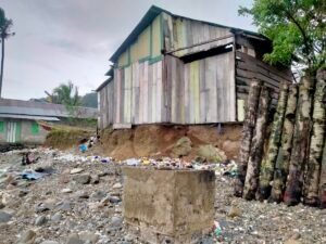 Pasalnya, rumah-rumah mereka saat ini terlihat tergantung dan terancam roboh apabila tidak segera ditangani secara serius.