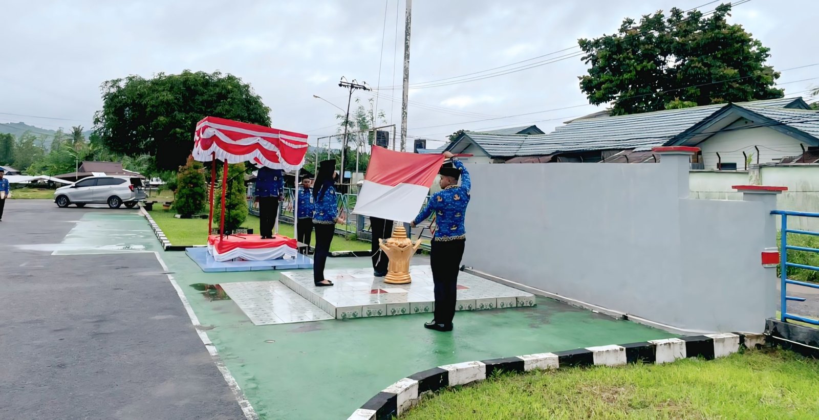 Upacara berjalan tertib dan penuh makna. Lagu kebangsaan Indonesia Raya berkumandang penuh semangat, mengiringi pengibaran bendera Merah Putih yang menjadi simbol tekad untuk terus bangkit dan bersatu.