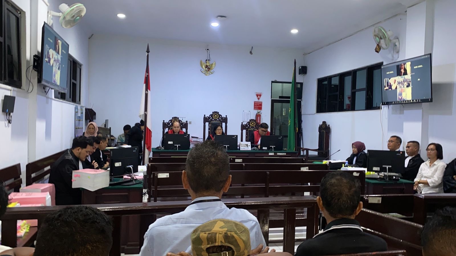 Sidang kemudian dilanjutkan dengan pemeriksaan saksi melalui sistem konferensi video karena sebagian pihak mengikuti proses persidangan dari lokasi berbeda dan tidak hadir langsung di ruang sidang.