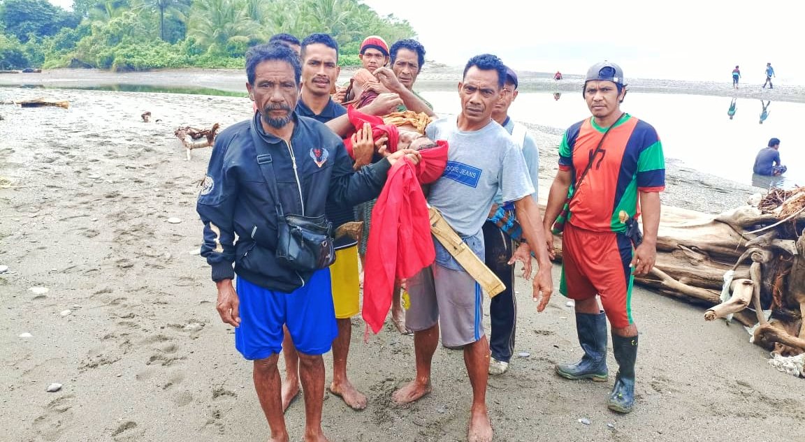 Dengan air mata dan tangan bergetar, warga bersama personel Polsek Waesama mengevakuasi jasad Tahu Tasane dari derasnya arus sungai. Tubuhnya yang penuh luka kini terbaring sunyi, pulang ke rumah dalam keadaan kaku dan dingin.