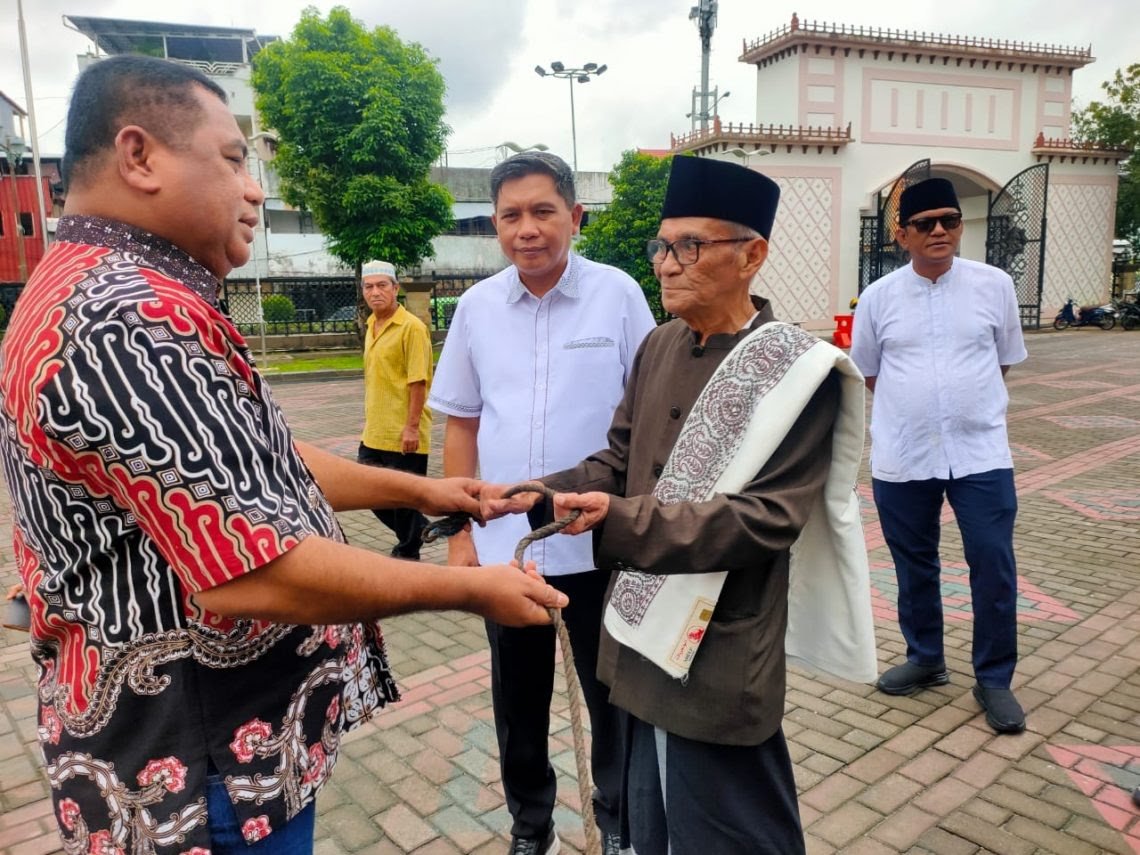 Hewan kurban tersebut diserahkan kepada Masjid Raya Al-Fatah Ambon, dan diterima langsung Imam Masjid, K.H.R.R. Hasanussi, Sabtu (15/06/2024).