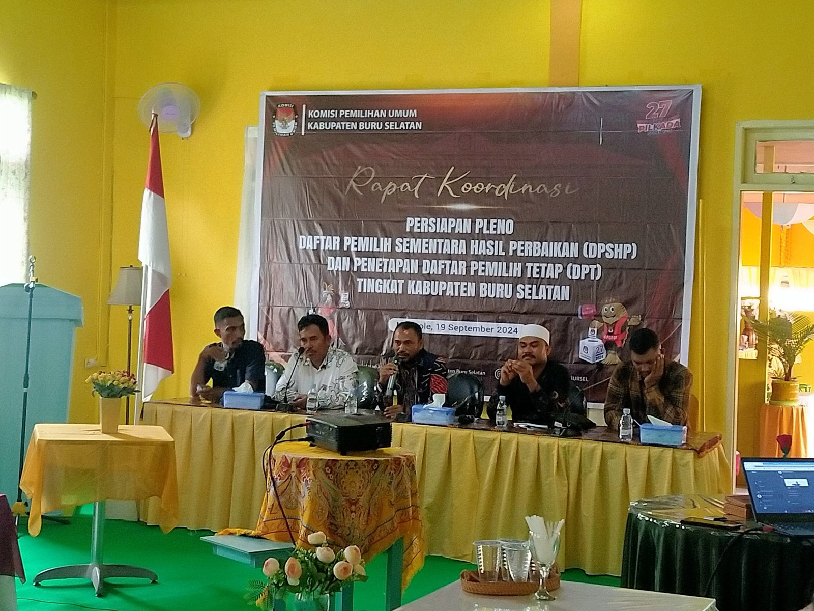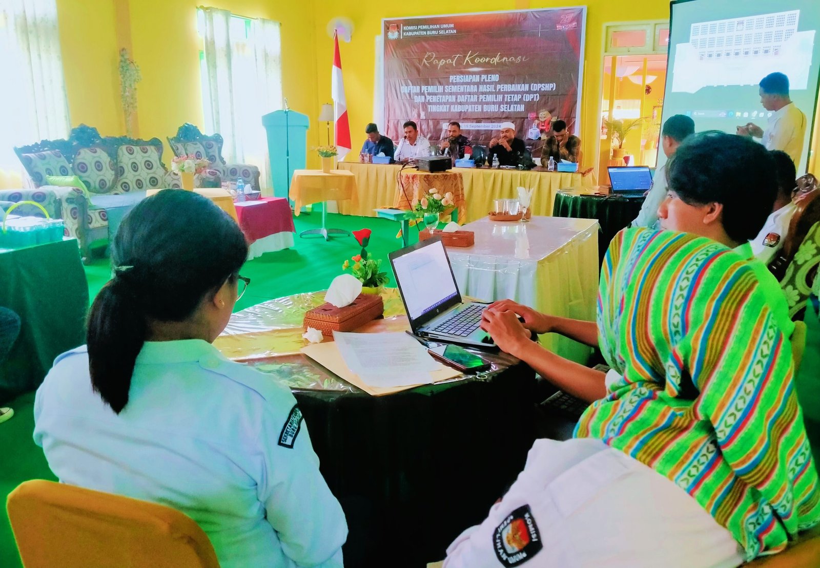 Ambontoday.com – Komisi Pemilihan Umum Kabupaten Buru Selatan melaksanakan rapat Koordinasi terkait Persiapan Pleno Daftar Pemilih Sementara Hasil Perbaikan (DPSHP) dan Penetapan Daftar Pemilih Tetap (DPT) tingkat Kabupaten Buru Selatan Tahun 2024.